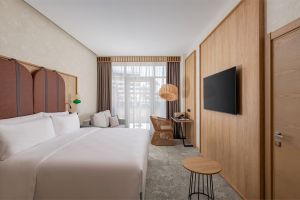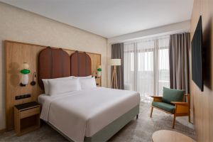 Просторный и стильный номер, в котором царит атмосфера абсолютного и беззаботного отдыха. Большая и удобная кровать, оборудованное рабочее место, современное техническое оснащение, просторная ванная комната – здесь есть все необходимое для комфортного и незабываемого времяпровождения. Почувствуйте атмосферу уюта и роскошного отдыха в номере категории Deluxe Premium.