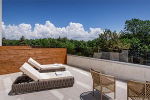 Украшением вашего отдыха будут солнечные ванны на шезлонгах и время проведенное в уютной мягкой зоне. Номер выполнен в современном стиле с оригинальная элементами декора, которые добавят в ваш отдых яркие краски.