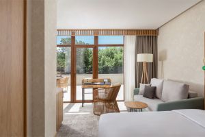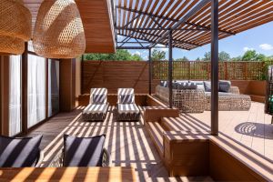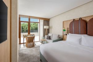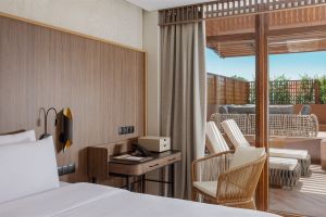 • Просторный и стильный номер с собственной террасой, в котором вы найдёте все для роскошного отдыха. Здесь каждая деталь продумана до мелочей: аутентичный дизайн, уютная мебель, комфортабельная ванная комната, терраса с превосходным видом. Если вы  цените возможность проводить больше времени на свежем воздухе - этот номер для вас.