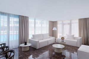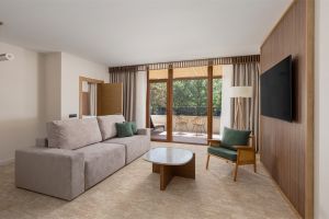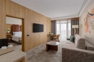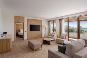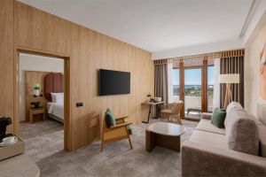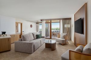• Безграничный комфорт - это Executive Suite Sea View. Номер расположен в главном здании и отлично подойдет для отдыха большой семьи или компании. Роскошная гостиная с рабочим местом и две просторные спальни, вид на море ждет гостей в этом уютном номере, площадью в 110 кв.м.