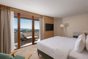 Расположившись на балконе, с чашечкой кофе вы будете наслаждаться видом на море из уютного номера Suite Deluxe Sea View. 13 двухкомнатных номеров категории Suite Deluxe Sea View с отдельными спальней и гостиной расположены с четвертого по шестой этаж основного здания.