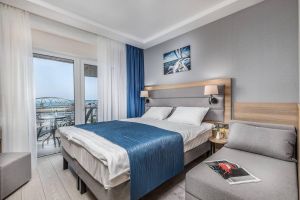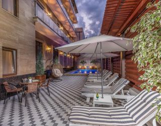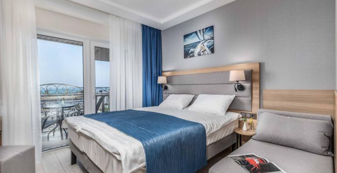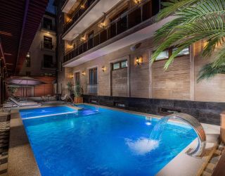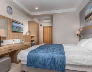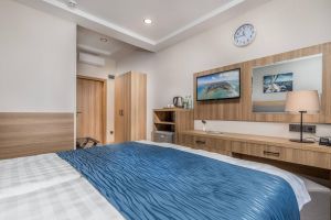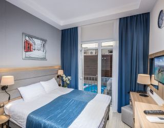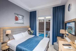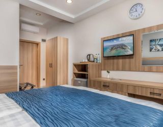 В стоимость включён завтрак и пользование открытым подогреваемым бассейном. Для комфорта: пляжные и банные полотенца, халаты, шторы блэкаут, туалетно-косметические принадлежности. Номер оборудован кондиционером, холодильником, телевизором, феном.