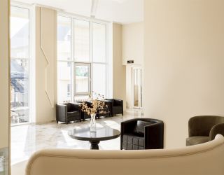 Двухкомнатный номер с двумя балконами (S номера 40 м2, S 1 балкона 11,5 м2) и сан.узел. В качестве основных мест предоставляется двуспальная кровать. В качестве дополнительных мест предоставляются 2х местный раскладной диван (два дополнительных места) и раскладное кресло (одно дополнительное место). В номере есть: холодильник, TV, сплит-систем, сейф, чайник, фен, посуда, чай/кофе/сахар, кофемашина с капсулами, питьевая вода 0,5л, халаты детские и взрослые, банные принадлежности и гостиничная парфюмерия. Номера расположены с 2 по 4 этажи. Шампанское при заезде.