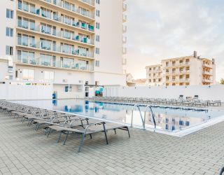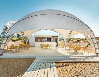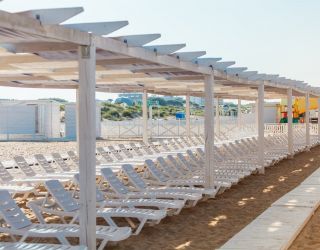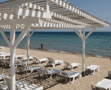 Частный пляж оборудован: настилом, лежаками, навесами, раздевалками, WC, душем, спасательным и медицинским постом, станцией на пляже (мороженое, безалкогольные напитки), пляжными полотенцами.