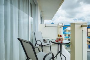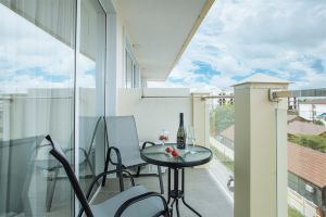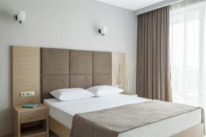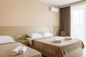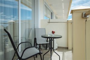 Стандартный номер с балконом и видом на море. В номере одна двуспальная кровать и одна односпальная. В качестве дополнительного места предоставляется еврораскладушка.