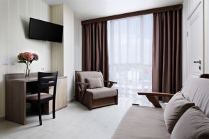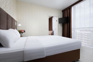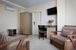 Жили в номере люкс, номер комфортный, все новое и чистое. Удобная кровать замечательно высыпались. Удобная душевая кабина, полотенца менялись по требованию, ежедневная уборка номера. Столовая великолепная. Отдельное СПАСИБО поварам за чудесно приготовленные блюда, порадовало их разнообразие. А также спасибо официантам за их работу.