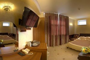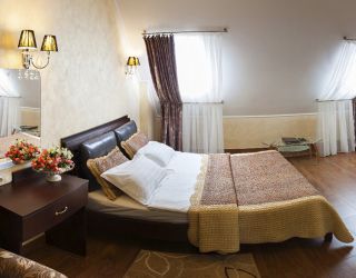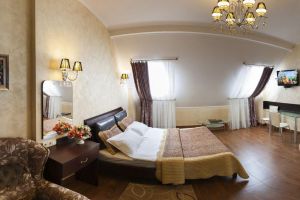 • Интерьер элегантных просторных номеров категории Делюкс А выполнена в классических коричневых, красных или кофейных тонах, в номерах предусмотрено все для прекрасного отдыха.