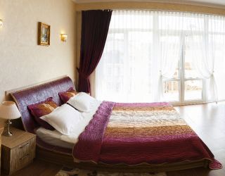 В комнате Делюкс В всегда много света, так как одна из ее стен полностью прозрачная и в зависимости от этажа имеет выход на балкон с боковым видом на море или террасу в с видом на горы. Здесь приятно выпить чашечку кофе утром и, сидя с бокалом вина, насладиться крымской прохладой вечера.