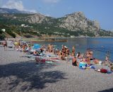 Ближайший к отелю Александрия в Кацивели пляж расположен всего в 250 м. Широкий общественный галечный пляж имеет пологий спуск к воде и, в отличие от пляжей Ялты или Симеиза, даже в самый разгар сезона он заполнен только на две трети. Прибрежную полосу защищают от штормов два широких пирса.