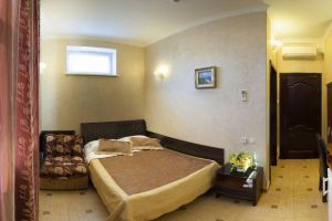 В этих номера отеля Крыма спальное место представлено двуспальной кроватью, а в Западном корпусе дополнительно установлен раскладной диванчик для размещения третьего человека.