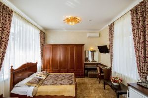 Интерьер элегантных просторных номеров категории Делюкс А выполнена в классических коричневых, красных или кофейных тонах, в номерах предусмотрено все для прекрасного отдыха.
