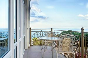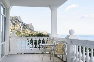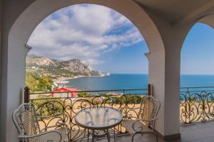 • балкон и большая терраса с панорамным видом на Голубой залив и гору Кошку.