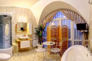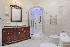 • улучшенный санузел (душевая кабинка, большой умывальник, полотенцесушитель и т.д.) + биде + гидробокс с парогенератором для гидромассажа с эффектом турецкой бани