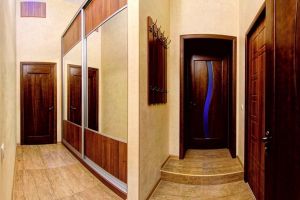 Интерьер комнат выполнен в бежевых, красно-коричневых или коричневых тонах