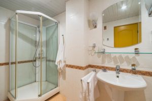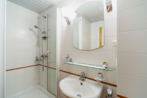 Однокомнатный номер мансардного типа с балконом, имеющий три односпальные кровати с прикроватными тумбами, мягкий уголок (диван и два кресла), столик и стулья, встроенный платяной шкаф, санузел с душем, телевизор, холодильник, сушилка, сейф, предоставляются банные и пляжные полотенца.